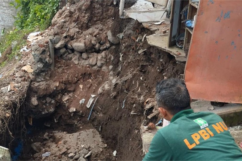“Tadi malam yang longsor mas, saat air sungainya besar,” ujar Dayat pemilik rumah.